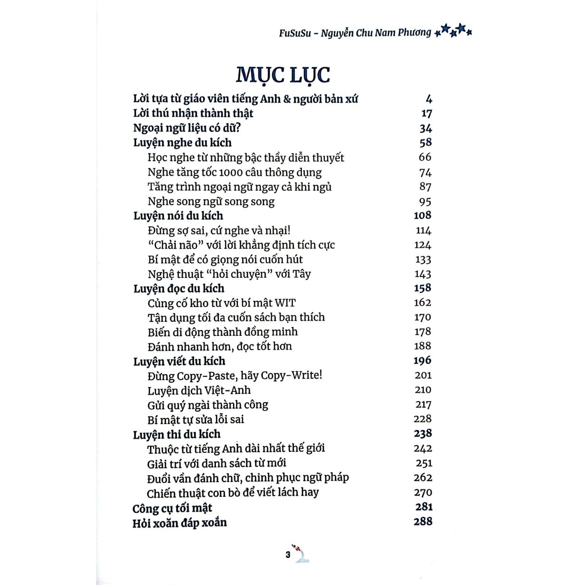 Từ 2017, Fususu đã bắt đầu tập hợp các bí quyết học tiếng Anh hiệu quả, và cho ra đời cuốn sách song ngữ độc đáo “21 Cách Học Tiếng Anh Du Kích”. Sau đó, sách đã lọt top bán chạy, giúp ích cho hàng ngàn độc giả:
