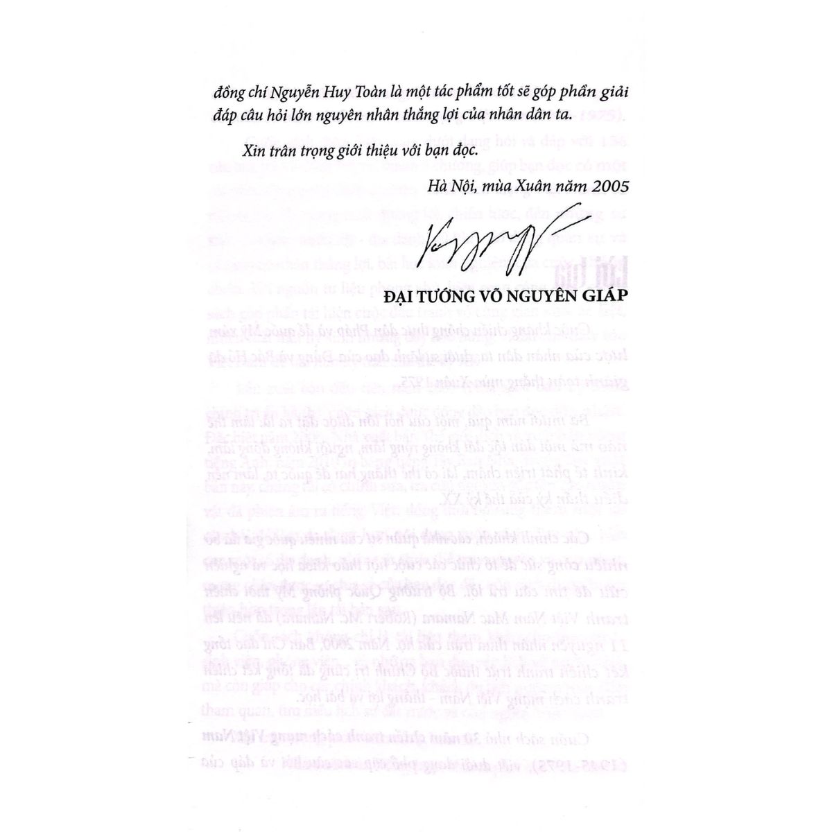 “..Để đi đến trận đánh cuối cùng này, chúng tôi đã từng làm một Điện Biên chấn động địa cầu năm 1954, một trận Mậu Thân làm náo động cả nước Mỹ năm 1968 và trận “Điện Biên Phủ trên bầu trời Hà Nội năm 1972. Chúng tôi từng được giao nhiệm vụ phải chấp nhận hy sinh, giành thắng lợi thật lớn trên chiến trường, để (trên bàn Hội nghị ở Gionevơ năm 1954 và Pari năm 1968-1973) những đại biểu ưu tú của Tổ quốc có thể nói lên tiếng nói chính nghĩa của dân tộc mình. Hơn một triệu đồng đội chúng tôi đã phải nằm lại trên các nẻo đường chiến trận….” – Nguyễn Huy Toàn (Trích bài đăng trên báo Nhân dân, số 17, ngày 23-4-2000)
