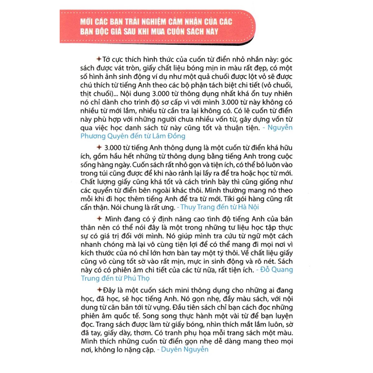 Cuốn sách dành cho người học tiếng anh ở trình độ trung cấp trở lên. Với thiết kế nhỏ gọn dễ dàng mang theo giúp bạn có thể học mọi nơi mọi lúc, tiết kiệm thời gian, nâng cao hiệu quả ghi nhớ, làm chủ lượng từ tiếng Anh trong thời gian ngắn.
