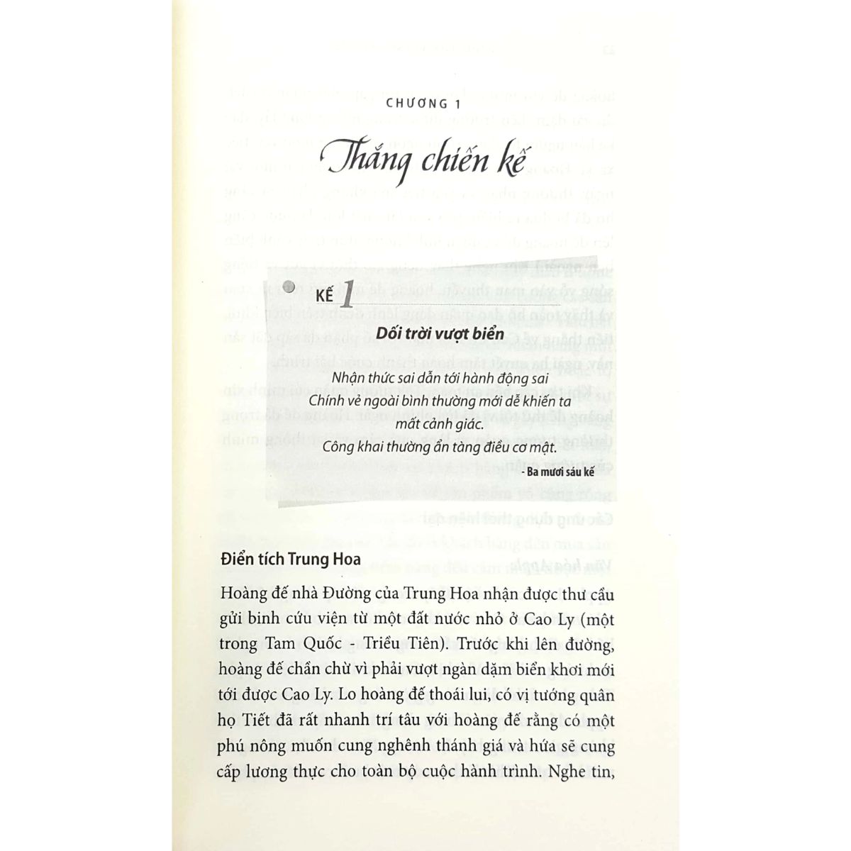 Mỗi kế đều bắt đầu bằng một điển tích Trung Hoa ngắn gọn.