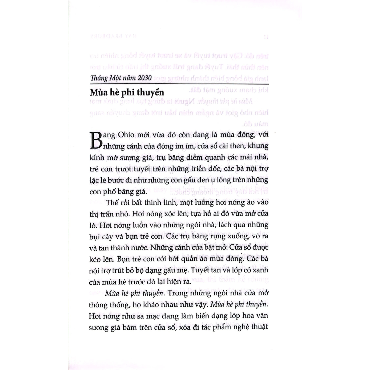 Văn phong đặc trưng Ray Bradbury: Đơn giản nhưng đầy tính nên thơ. Mỗi trang viết đều khiến độc giả ngộp thở trước vẻ đẹp lộng lẫy và trăn trở trước những câu hỏi về sự tồn vong của nhân loại.