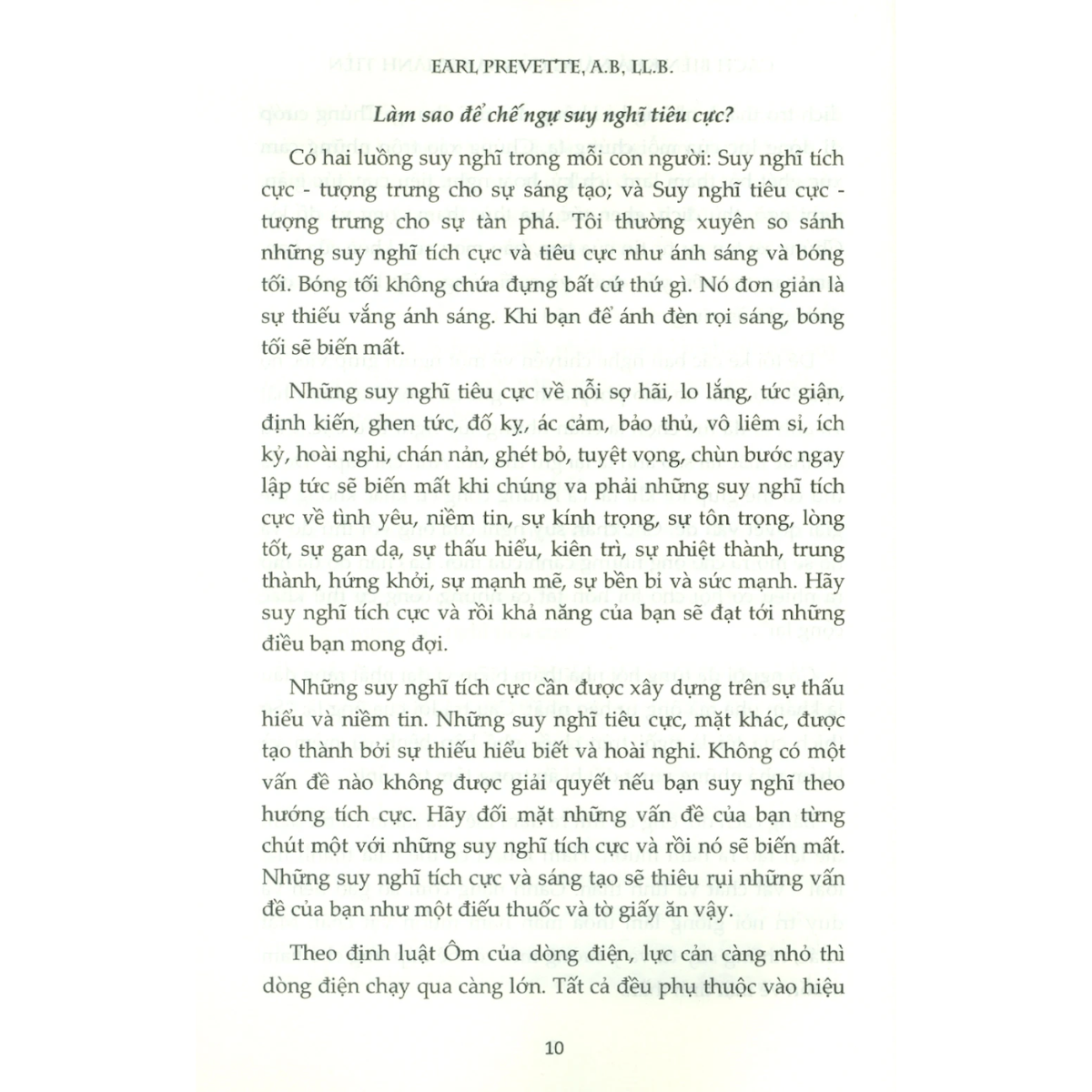 Hãy quyết định ngay bây giờ để có thể làm chủ công việc, khả năng, những suy nghĩ lạc quan, những hành động và là người làm việc tốt. Hãy bám chặt lấy nguyên lý này với sự quyết tâm, can đảm và niềm tin bất biến. Nhớ rằng bạn có thể điều khiển tất cả mọi thứ trong vũ trụ này để nhận ra và thỏa mãn đam mê của bạn. Hãy tận dụng sức mạnh ấy. Lập một kế hoạch, tưởng tượng ra đam mê của bạn và hãy thuyết phục mình rằng đó là sự thật. “Tin vào những gì bạn sẽ đạt được và bạn sẽ có nó”.