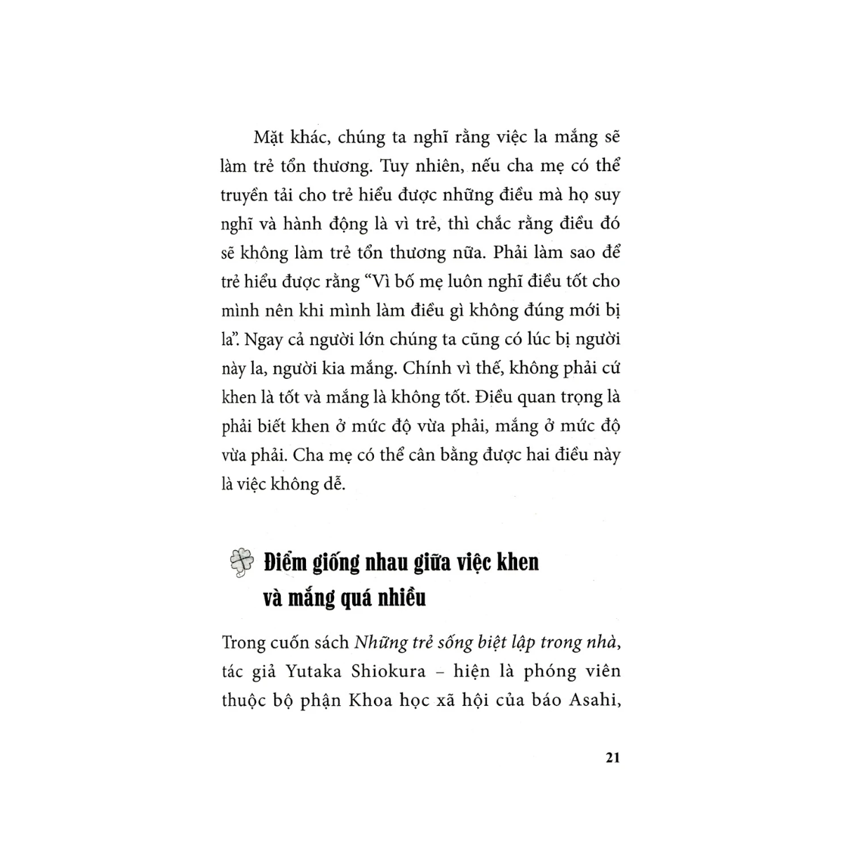 Nuôi dạy một đứa trẻ chưa bao giờ là điều dễ dàng. Tại sao con không chịu ngủ sớm? Tại sao con nói không nghe lời? Tại sao con nhút nhát?… Những trăn trở này sẽ được giải đáp trong cuốn sách thông qua lăng kính của bác sĩ tâm lý trẻ em Masami Sasaki và cựu giáo viên mẫu giáo Aki Wakamatsu. Cuốn sách không cung cấp những lý thuyết suông, mà là những “bí quyết” để cha mẹ và con cái cùng cảm thấy thoải mái trong hành trình trưởng thành.