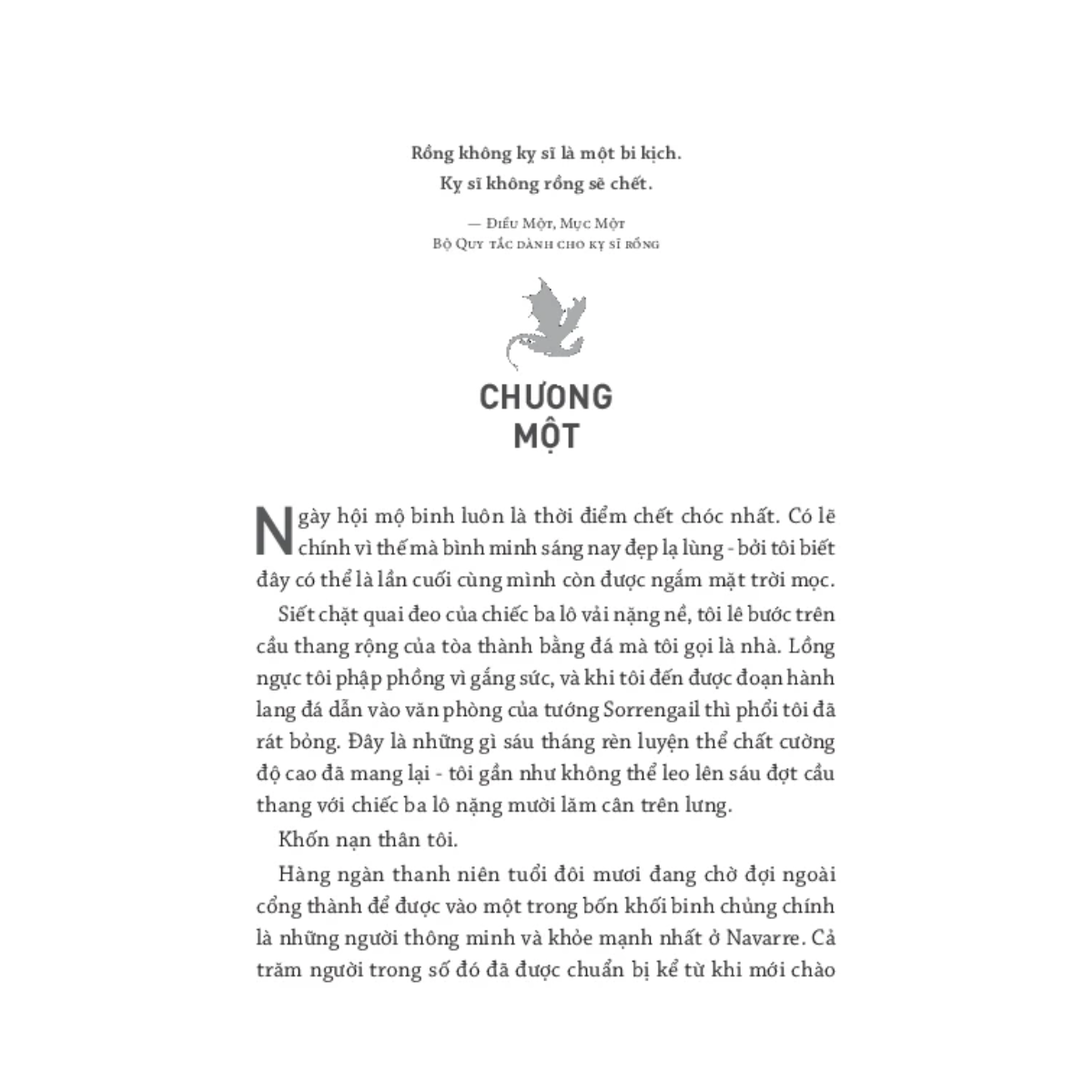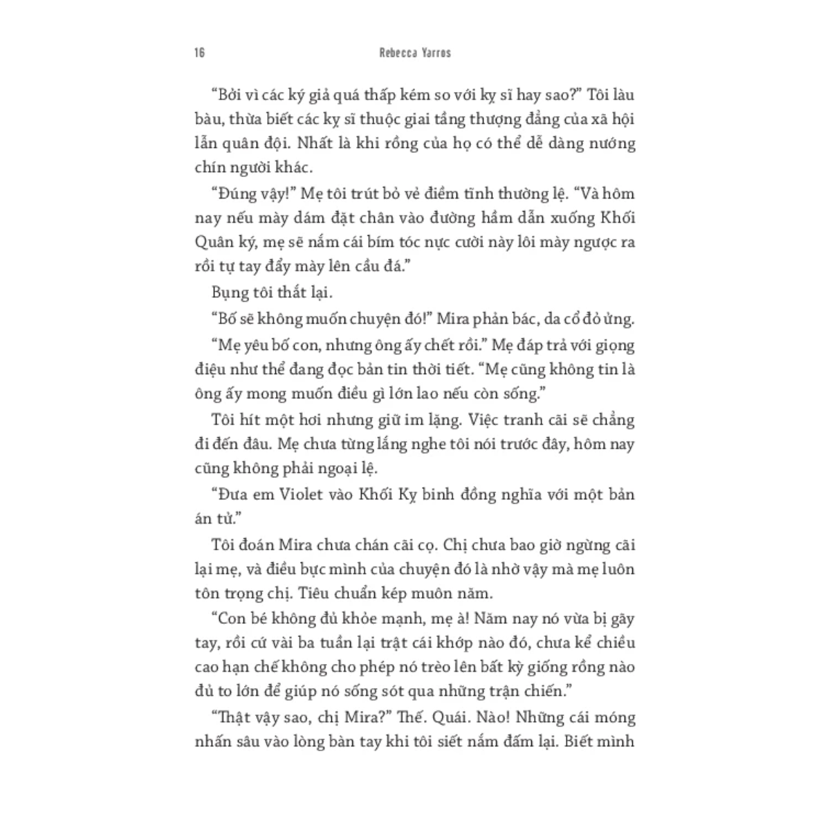 Violet Sorrengail – một cô gái hai mươi tuổi với cơ thể nhỏ bé, vốn chỉ mơ ước về một cuộc đời bình lặng giữa những giá sách cũ kỹ của Khối Quân ký. Nhưng định mệnh nghiệt ngã đã đẩy cô vào Khối Kỵ binh theo mệnh lệnh của người mẹ tổng chỉ huy sắt đá.