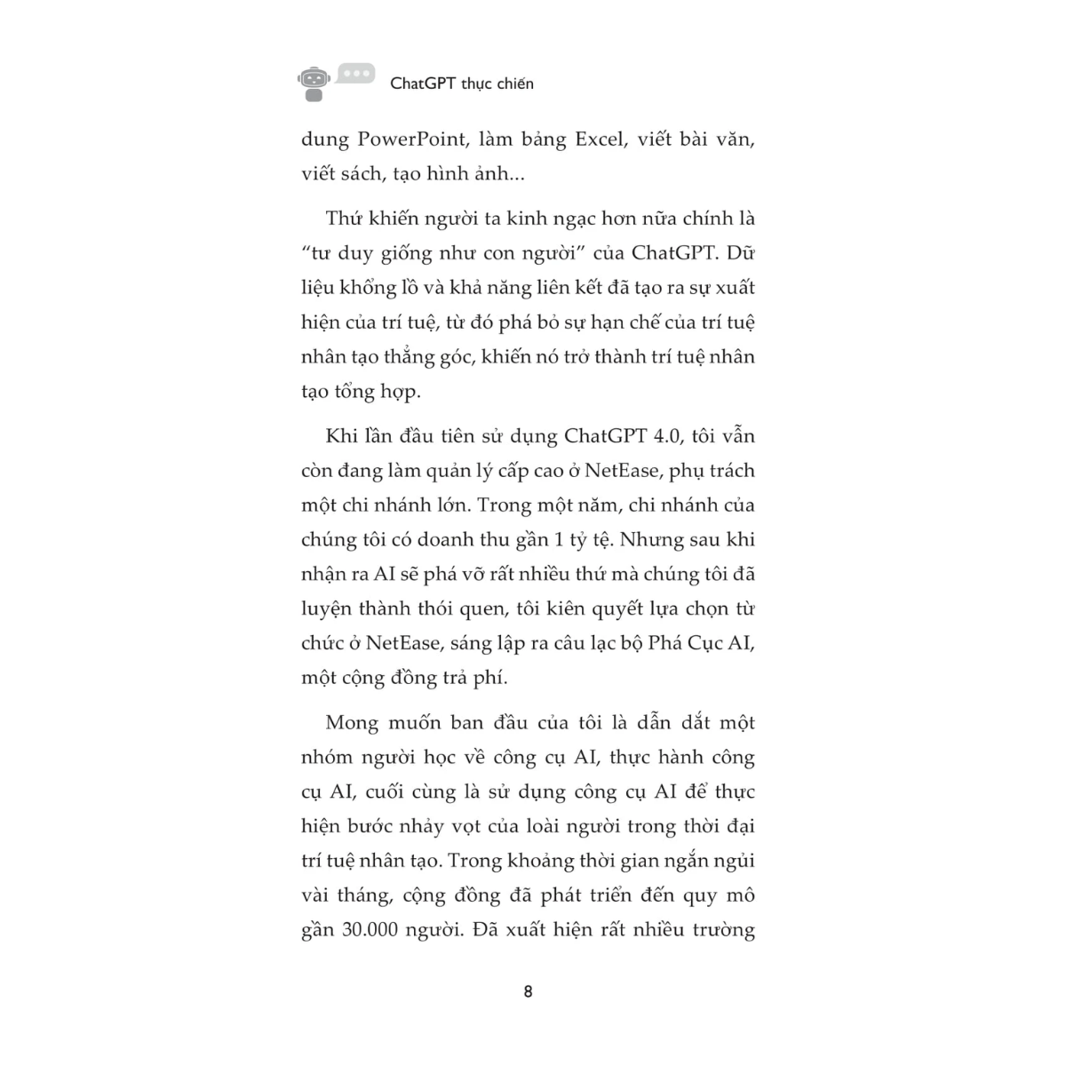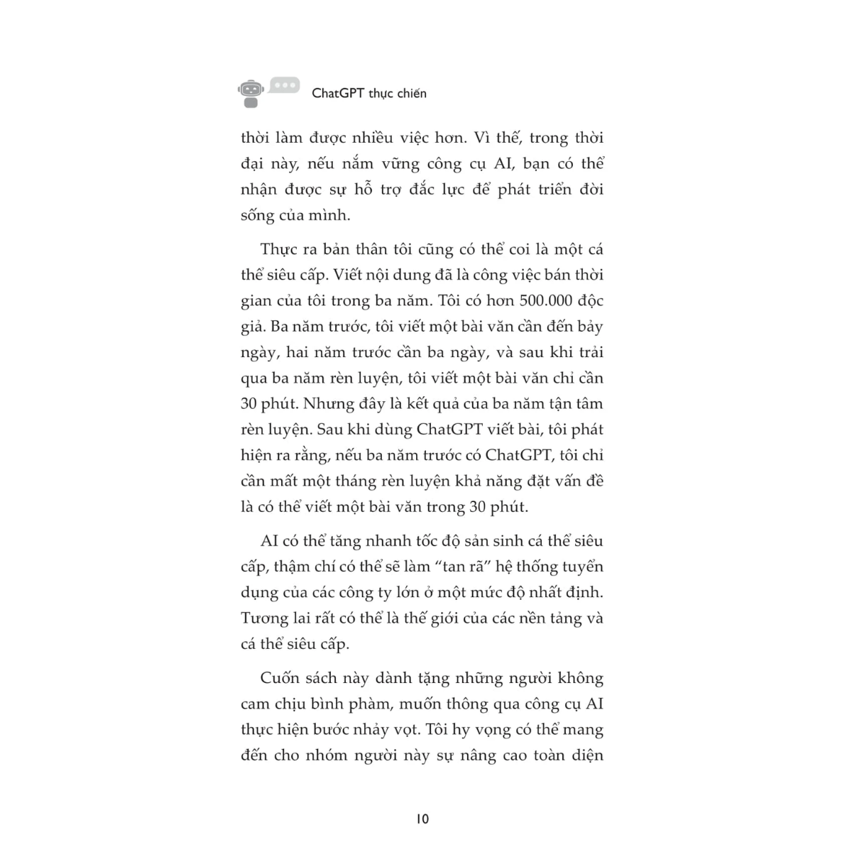 Khác với những cuốn sách lý thuyết, “ChatGPT Thực Chiến” tập trung vào các thao tác cụ thể, giúp bạn hiện thực hóa vô số tiềm năng chỉ bằng những câu lệnh (prompt) chính xác: