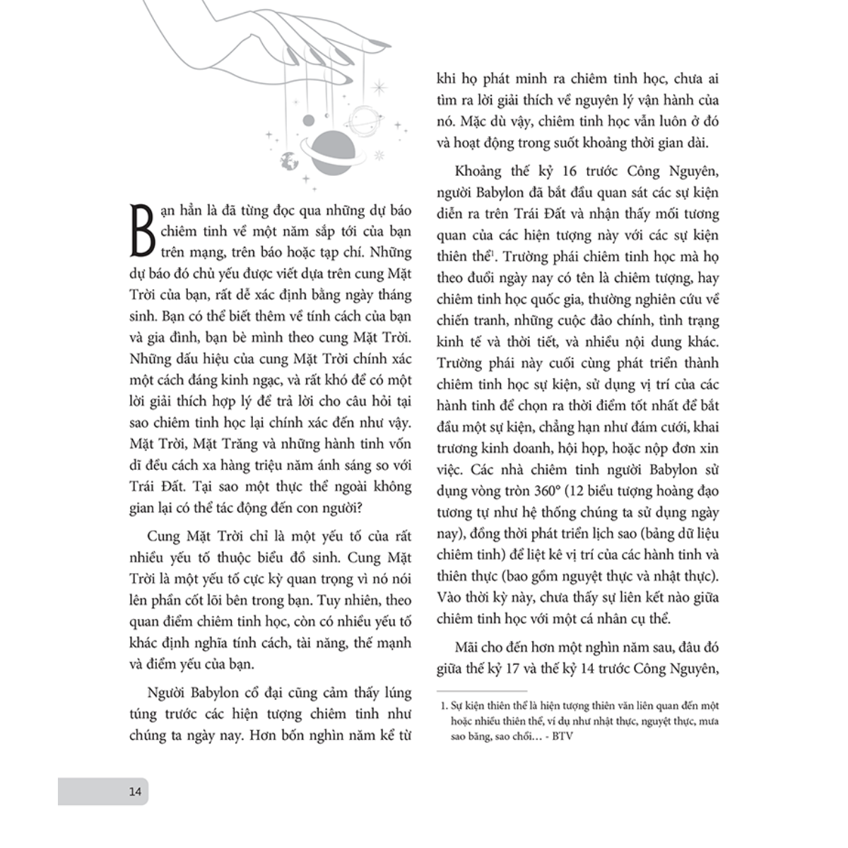 “Bạn không tình cờ đọc được cuốn sách này đâu. Mỗi con người đều có một hành trình chiêm tinh riêng biệt và mọi thứ luôn xảy ra đúng thời điểm. Hãy tận hưởng hành trình khám phá chính mình và trở thành phiên bản tốt đẹp nhất mà Vũ Trụ đã định hình cho bạn.”