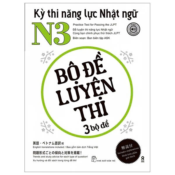 – Bao gồm 3 đề luyện thi Kỳ thi năng lực Nhật ngữ cấp độ N3.
