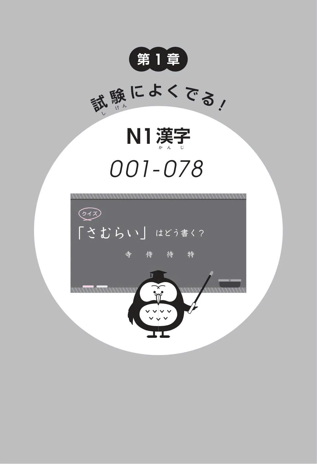 Bao gồm 800 chữ Hán tự thường được ra trong các Kỳ thi năng lực Nhật ngữ cấp độ N1. Bao gồm các đặc trưng: