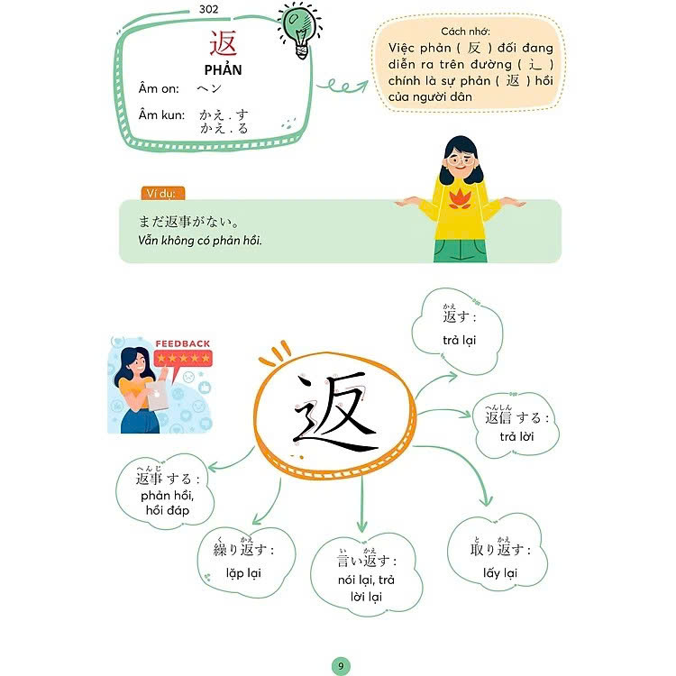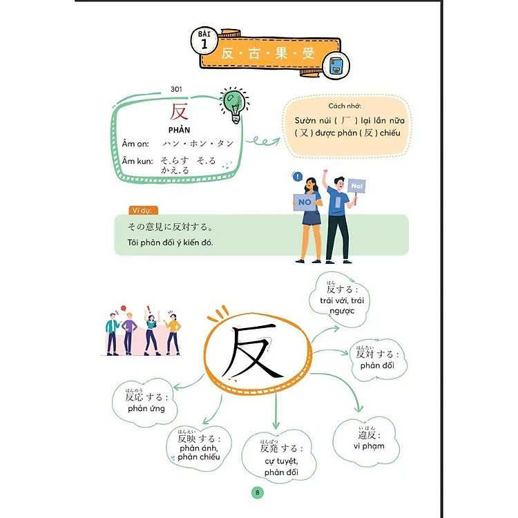 – Cách nhớ Kanji qua hình ảnh và câu chuyện: Mỗi chữ Kanji được minh hoạ sinh động, kết hợp với câu chuyện giúp người học dễ dàng liên tưởng và nhớ lâu.