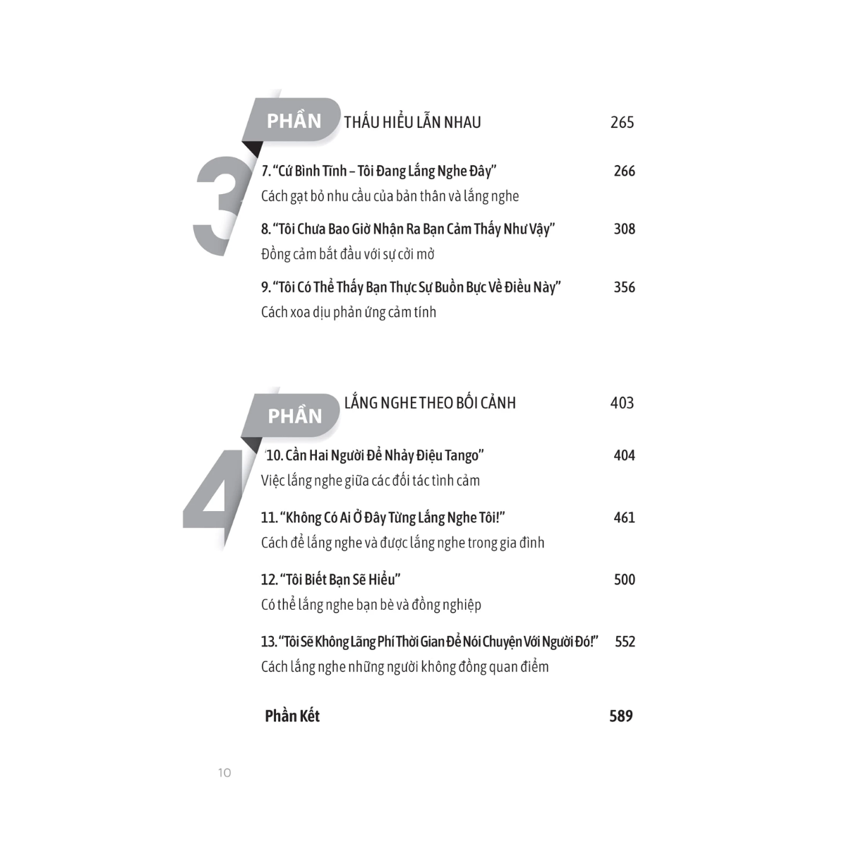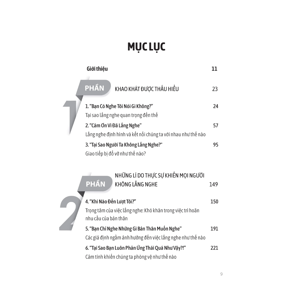 Nghệ thuật lắng nghe – Để cải thiện các mối quan hệ được chia thành 4 phần rõ ràng và thực tiễn: