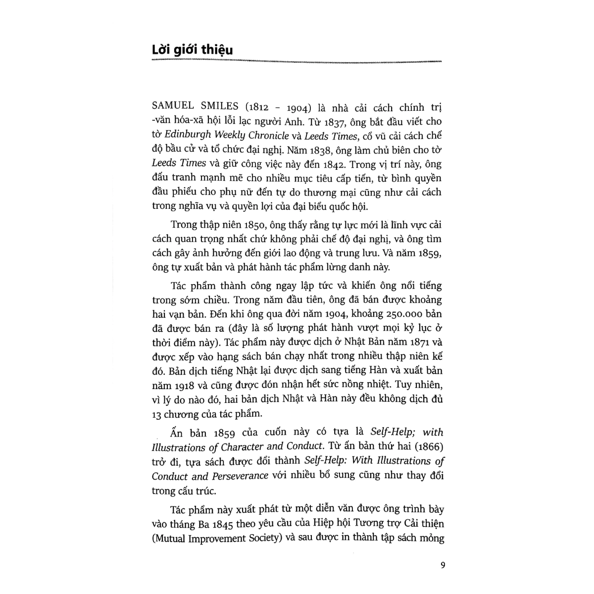 Được mệnh danh là “Kinh Thánh của chủ nghĩa tự do”, cuốn sách của Samuel Smiles không chỉ là một tác phẩm văn học, mà là một lời tuyên ngôn mạnh mẽ về sức mạnh của cá nhân. Xuất bản lần đầu năm 1859, tác phẩm đã vượt qua thử thách của thời gian để trở thành kim chỉ nam cho bất kỳ ai muốn làm chủ vận mệnh của chính mình.
